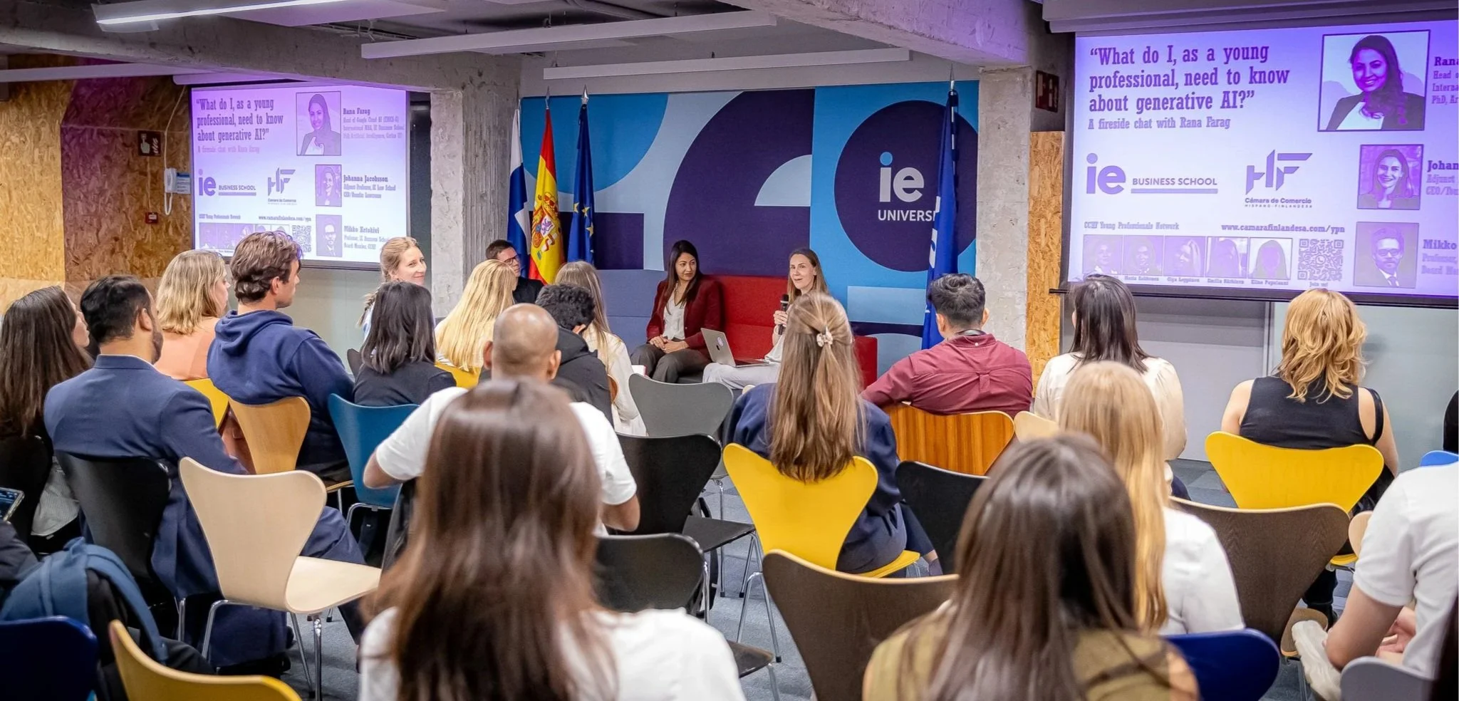 La semana pasada celebramos nuestro segundo evento de YPN, dedicado a la Inteligencia Artificial Generativa y a sus implicaciones para los jóvenes profesionales. El evento ofreció un interesante espacio de debate sobre cómo la inteligencia artificial está dando forma al futuro del trabajo y qué aspectos deberían tener en cuenta los jóvenes profesionales al utilizarla. La sesión contó con una conversación tipo fireside chat moderado por Mikko Ketokivi, profesor de Operations Management & Organization Design en IE Business School, con las aportaciones expertas de Rana Raouf Farag, PhD, MBA, Head of Google Cloud AI Architecture EMEA-S en Google Cloud, quien exploró tanto las oportunidades como las responsabilidades que conlleva el uso de las tecnologías de IA.